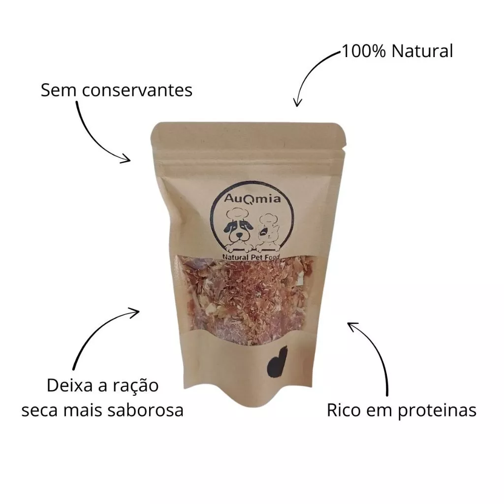 Feito com ingredientes 100% naturais, o Saborizante é rico em proteínas, garantindo uma alimentação saudável sem adição de conservantes. A textura desidratada em farelos e pequenos pedaços facilita a mistura com a ração, tornando cada porção uma experiência gostosa para o seu pet.